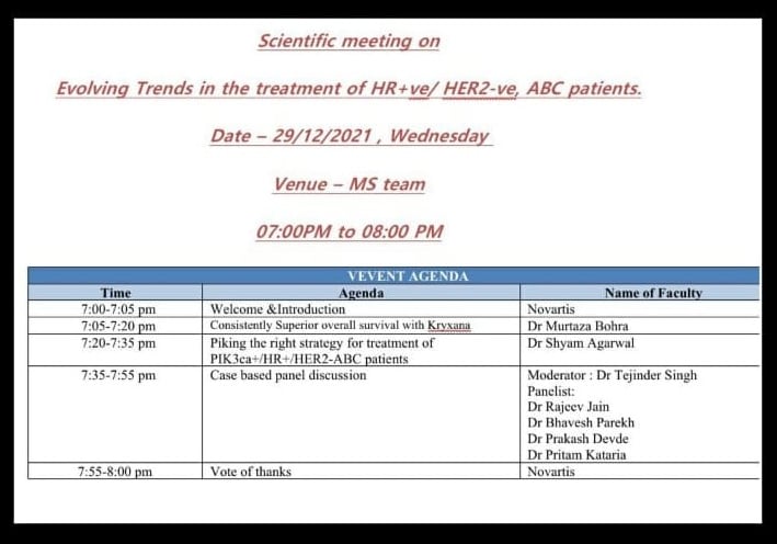 Scientific Meeting On Evolving Trends in the treatment of HR+ve/HER2-ve, ABC Patients